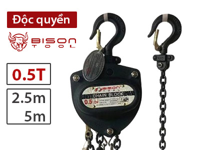 Pa lăng xích kéo tay Bison cao cấp 0.5 tấn 2.5m, 5m