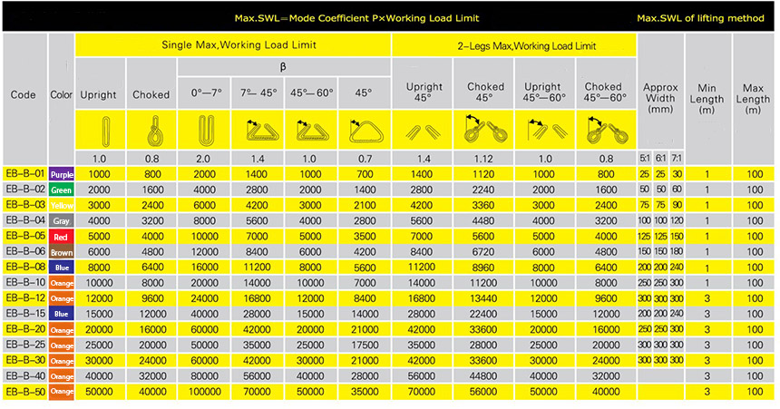 Đặc điểm kỹ thuật cáp vải bản dẹt vòng tròn EB-E