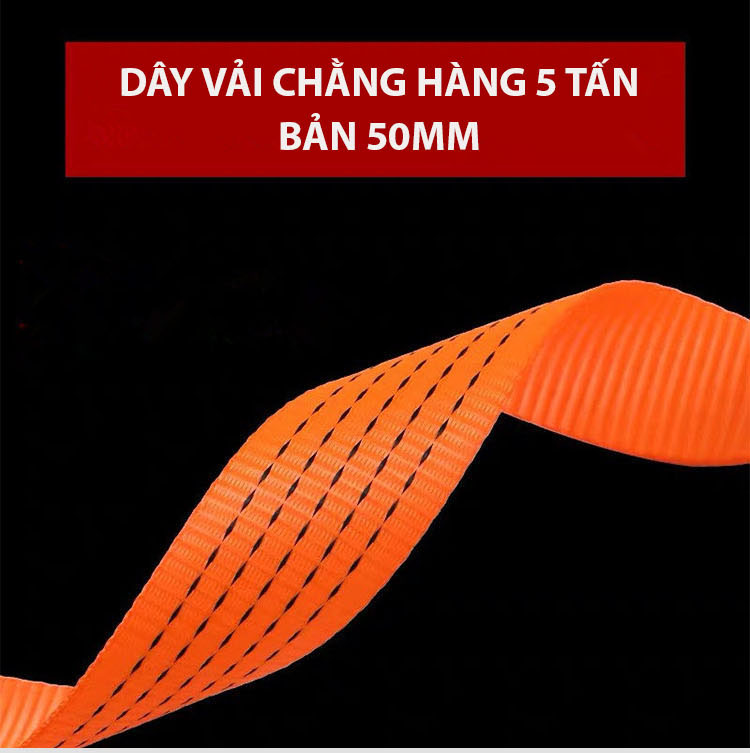 Dây vải chằng hàng là loại phụ kiện được sử dụng phổ biến dùng để chằng buộc cố định hàng hoá, thường được sử dụng nhiều trong các lĩnh vực như vận tải, xây dựng, công nghiệp… Sản phẩm được làm từ 100% polyester, đảm bảo độ chắc chắn và sử dụng lâu dài.