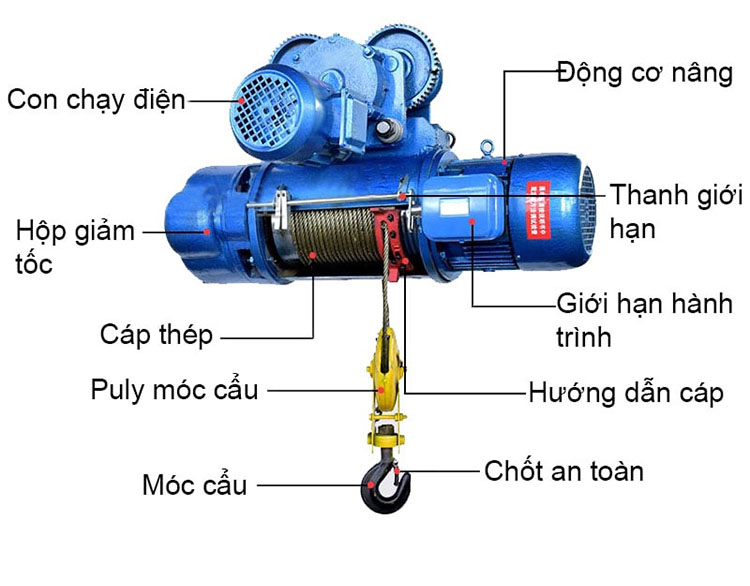 Cấu tạo Pa lăng điện cáp 380V 5 Tấn 6m, 9m