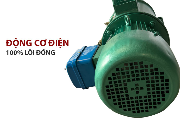 • Động cơ điện 100% lõi đồng, sử dụng bền bỉ hơn, hiệu suất tải cao, giúp quá trình nâng hạ vật nặng hiệu quả.