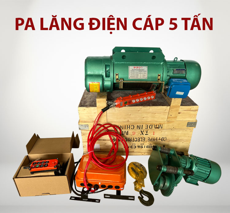Đặc điểm chi tiết pa lăng điện cáp 380V 5 Tấn 6m, 9m