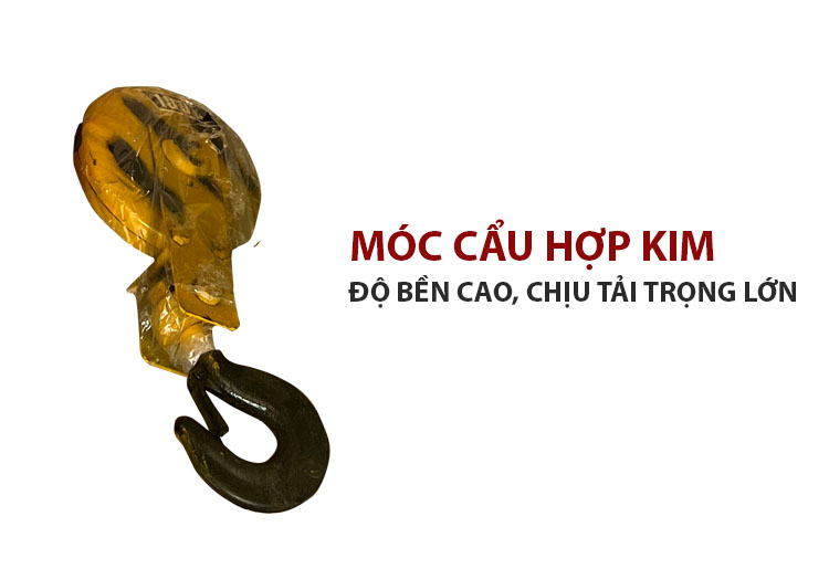 • Móc cẩu thép hợp kim có độ bền cao, sử dụng được lâu dài mà không bị mỏi