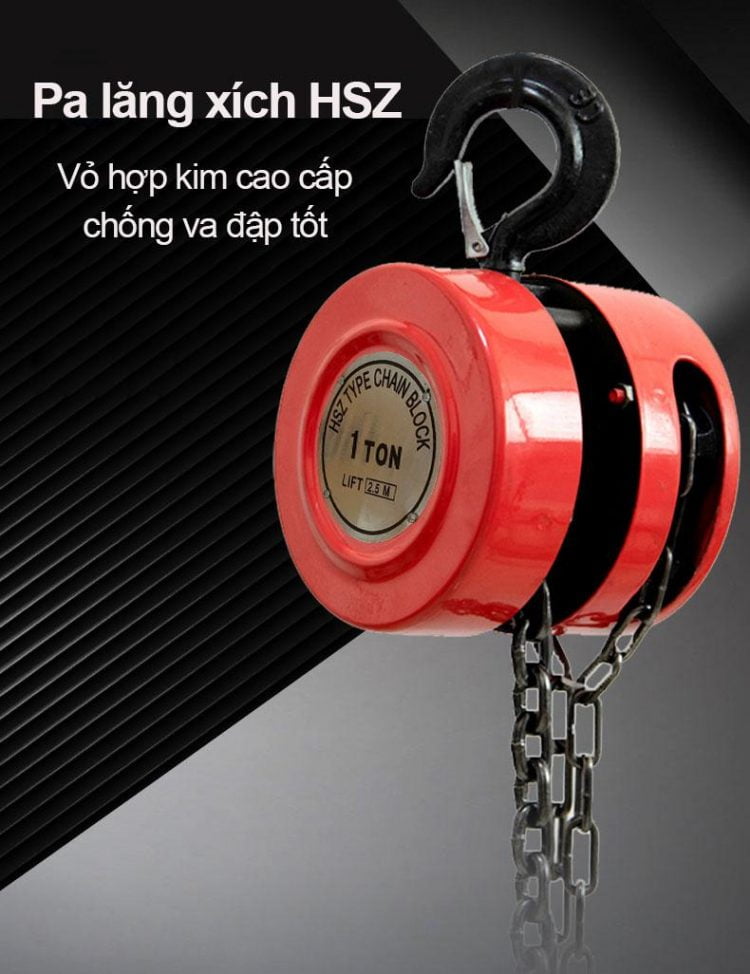 Pa lăng xích kéo tay hiệu HSZ là hệ thiết bị nâng hạ vật nặng theo phương pháp thủ công. Loại pa lăng này được dùng rộng rãi do tính cơ động cao, gọn nhẹ, phù hợp cho mọi điều kiện làm việc và đặc biệt thích hợp cho những nơi không có nguồn điện. Dễ sử dụng, lực kéo nhẹ, dễ vận chuyển, ít hư hỏng.