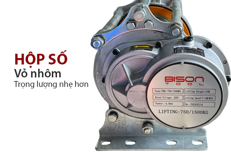 Tời đa năng THK1 220V 750/1500kg 60m thương hiệu Bison – độc quyền của công ty vật tư công nghiệp Trung Hưng. Sản phẩm thuộc dòng tời đa năng THK1 thế hệ mới, đã được cải tiến và nâng cấp hiện đại hơn so với thế hệ tời THK trước đây.